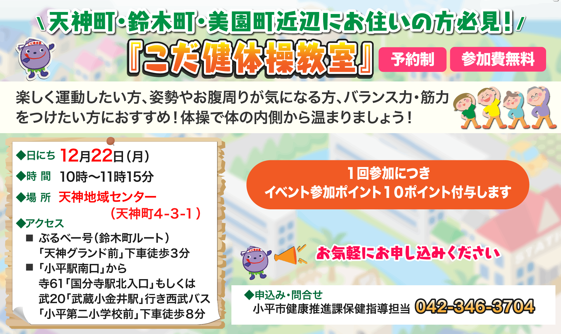 申込み・問合せ:小平市健康推進課保健指導担当 042-346-3704